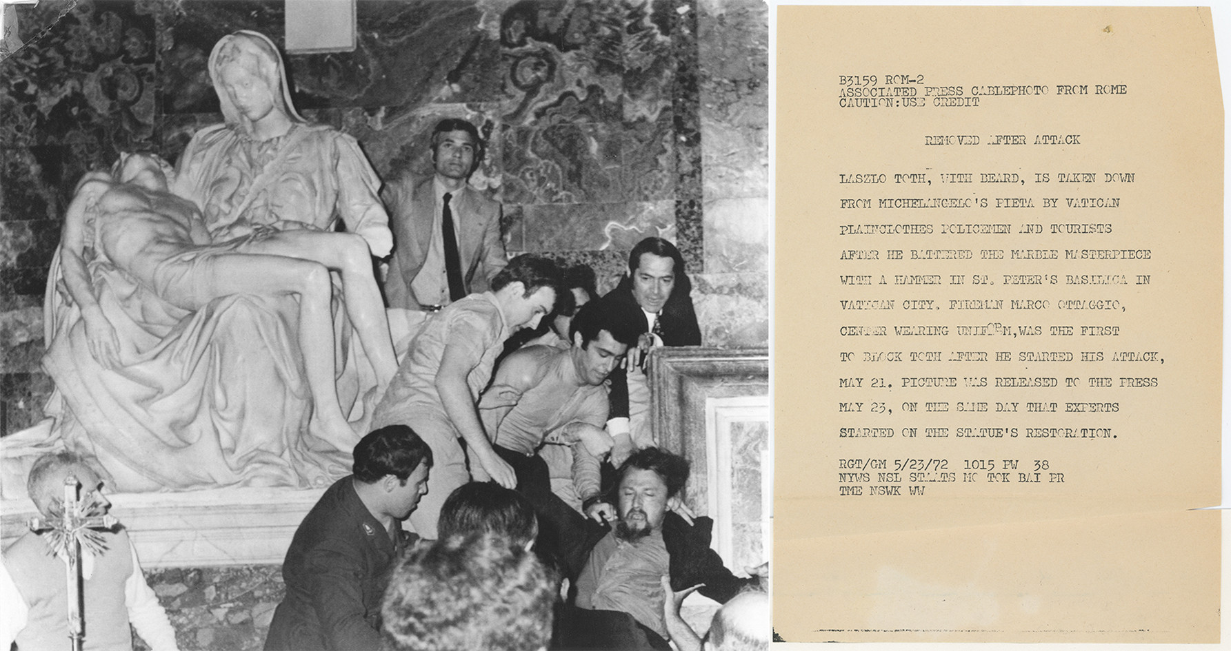 During Hurkmans’ residency at the Royal Netherlands Institute in Rome (KNIR), partner of the Akademie van Kunsten (KNAW), she visited the restoration studio of the Vatican Museum to see if a copy of Mary's left arm and hand could be cast. Since there are no old moulds, the director of the restoration studio, Guy Devreux, put her in touch with Andrea Felice. He is the owner of the FeliceCalci studio that makes moulds and copies of statues in a traditional way. Using a 19th-century copy of the Pietà, FeliceCalchi made a mould from the severed part of the arm. Subsequently, a new arm was cast with imitation marble, the same material with which the arm was restored in 1972.