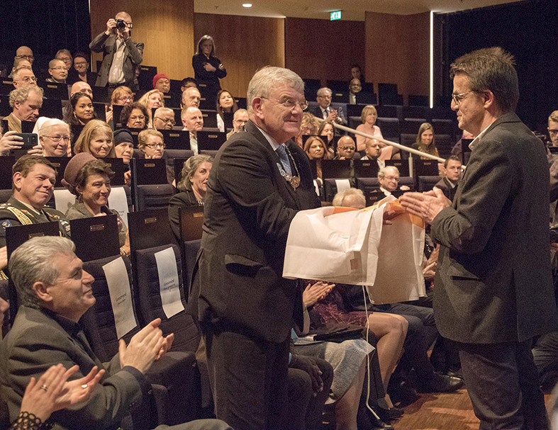 The Flag of Compassion that I received on behalf of the city on January 22 2018 during In Vrijheid Verbonden, is in the first place a beautiful artwork. It is a gift for the almost 350.000 citizens of Utrecht. However, the Flag of Compassion means much more to me than just an artistic expression. The Flag embodies what Utrecht already is for centuries: a home where everyone, with respect for each other's differences, can live alongside and with each other. A place that we share together. A city where people show interest in each other. Like our patron saint Martin of Tours who cared for his fellow human being, gave him some warmth, showed his compassion for another being. And in this way, he showed himself as a human.