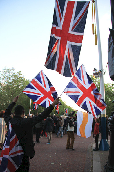 Probably it was none of this and to be honest, we were not sure ourselves. Would it be risky? Would we be beaten up by stauncher royalists for displaying this unknown, puzzling flag in such a high-strung moment of national unity? Would we be arrested for treason? All we knew was that it would be much more fun with the Flag of Compassion. The whole show would somehow be more meaningful than just waving a Union Jack or standing by as uninvolved spectators. Opening up some space for lateral thought seemed a good idea. It would introduce an element of doubt, of irritation, a different colour, different solidarities, new meanings, if undefined and uncertain.