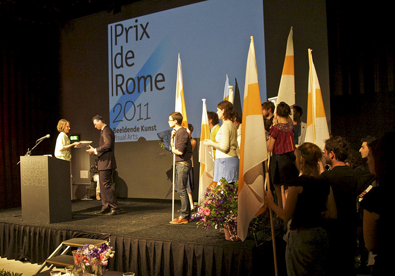 Yesterday, Pilvi Takala and Vincent Vulsma received the first and second prize of the Prix de Rome during a ceremony held at the SMART Project Space in Amsterdam. Parliamentary Undersecretary for Culture Halbe Zijlstra awarded the prize. For many of us, it was a slap in the face that he was the person who gave the award. A man who obviously has no feeling for the arts, and who represents a policy built on a gross underestimation of the importance of culture; he really should not be allowed to get on a podium for a ceremony like this. But how do you constructively deal with this, without directly disrupting the ceremony? On the initiative of Gwenneth, herself one of the long-listed artists for the Prix, we organized an intervention by artists.