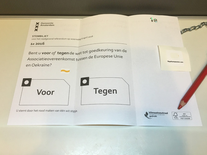 In conclusion, The Flag of Compassion offers you a tool to participate in the democratic process supporting the concept of referenda in general and supporting the right to vote in a democratic society. This referendum is not about the content it is about the process. Based on the content of the debate one might even want to be compassionate to both sides. In this specific case voting ‘compassion’ will make the vote content wise invalid, but it will as well make the process of participation visible.