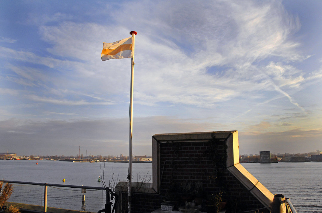 May 12-31: Flag of Compassion is one of the thirteen artist flags waving on the ferries that cross the IJ river during the Amsterdam Ferry Festival. The edition called WHOmanity questions: What else can a flag be?