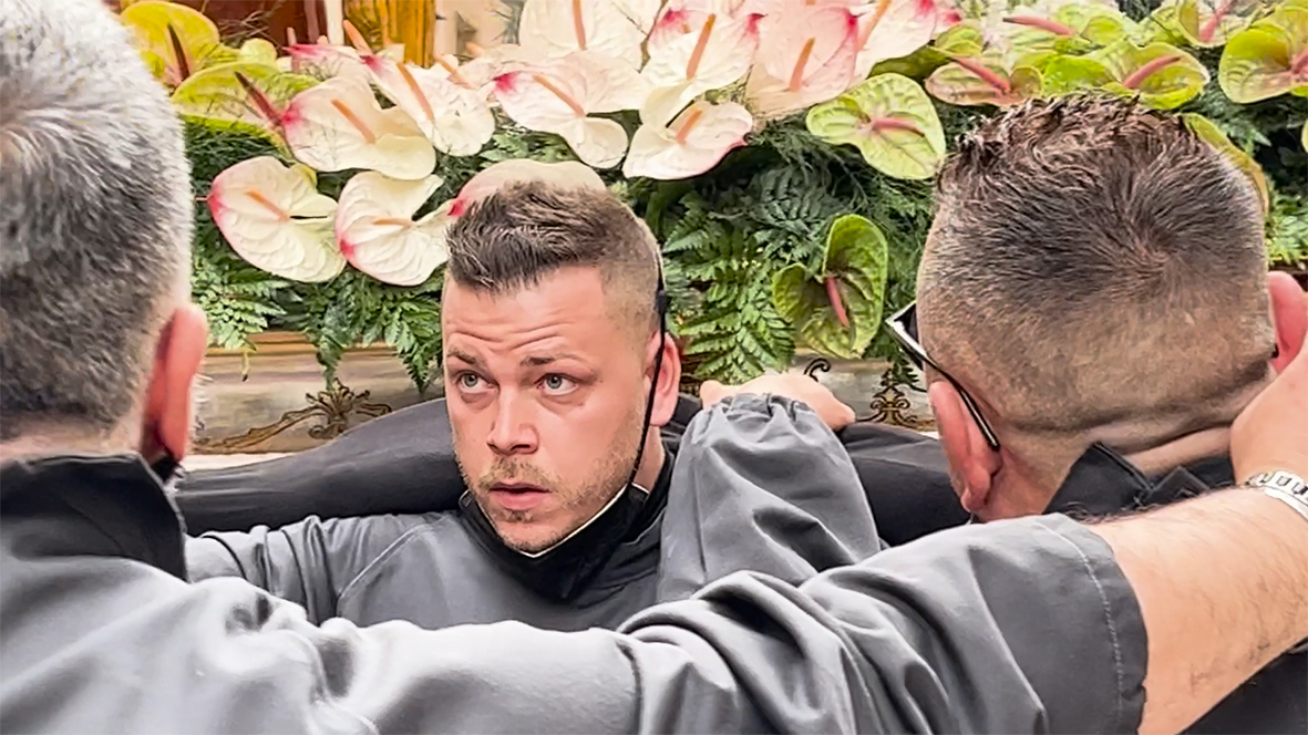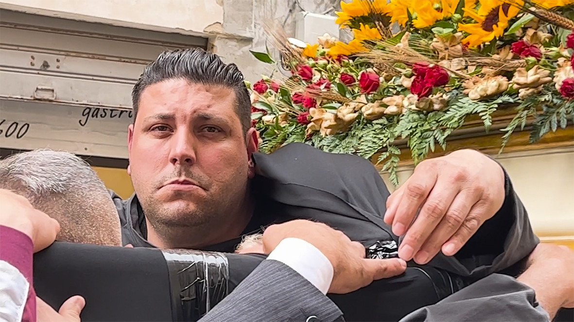 The video mainly shows the faces and hands of the men who very devotedly carry this heavy weight together. It is an act of perseverance, endurance and being together. The ritual of the processions in Trapani is of great value within their community.
