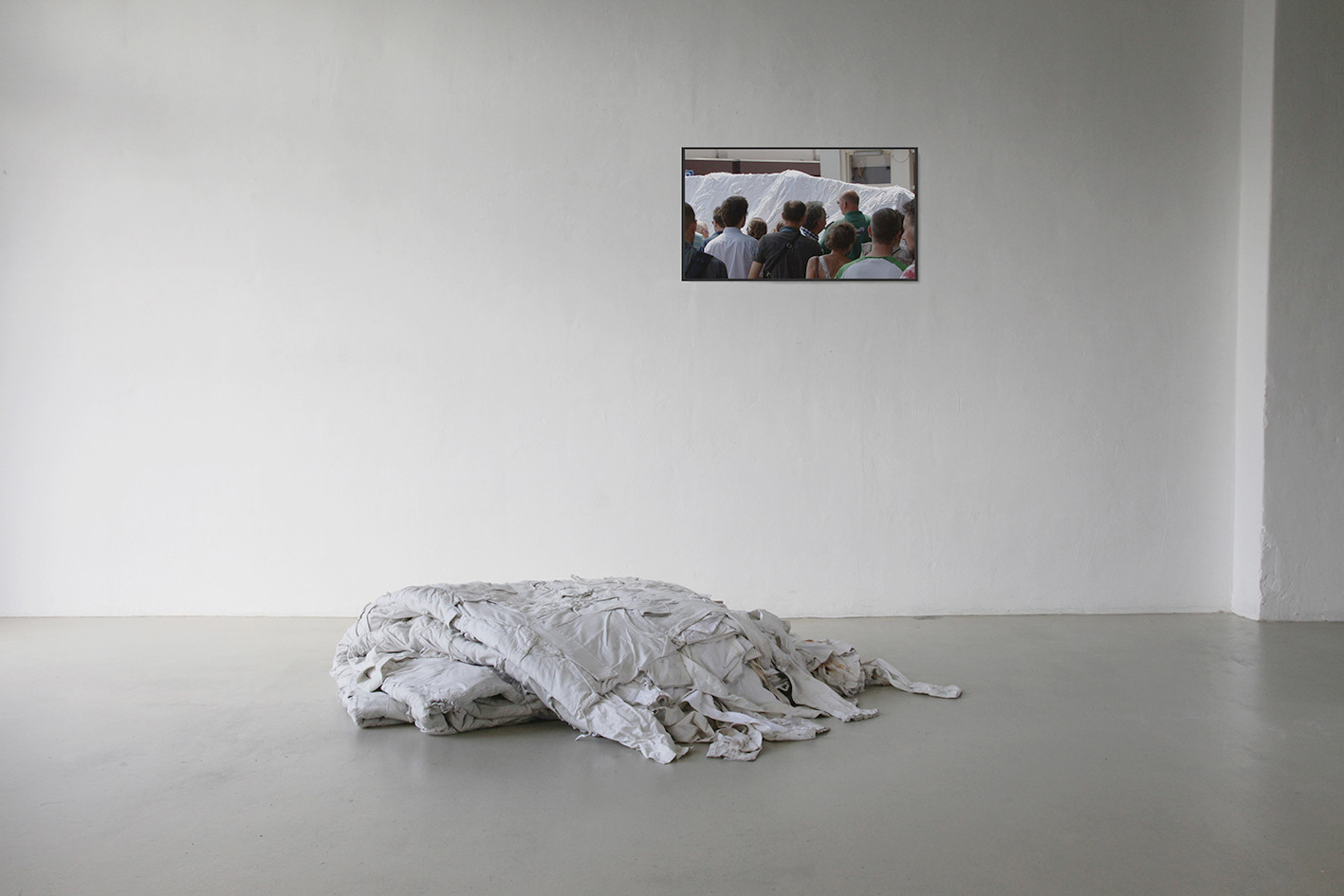 The White Shroud is made of used, white clothes, mostly baby’s and children’s shirts and blouses. The clothes are sewn together – with the neck openings in one direction – and form a shroud, 3 x 8 meters in size.