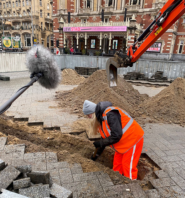 Grondonderzoek voor de fundering van het monument.