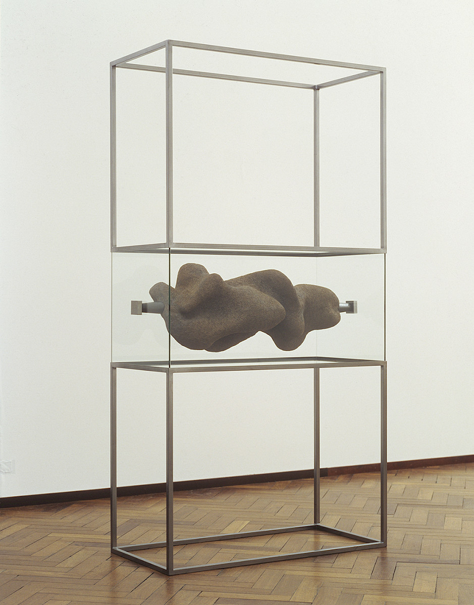 Looking at A Land Denuded of Meaning, Principle I, 1991, a recent work by Rini Hurkmans, one is fascinated in the same way as when looking at the stone brought back from the moon by the astronauts. This stone, displayed at the Museum of Natural History, is presented to the public as a mythic vessel containing many meanings and thoughts, as an expression of human potential. Though formed by nature, this object is offered as being a sort of fetish, not of the shaman or the medicine man, nor as a relic in a beautiful case, but rather as the agent of a mysterious power, a metaphor for mankind's search for knowledge and the meaning of existence.