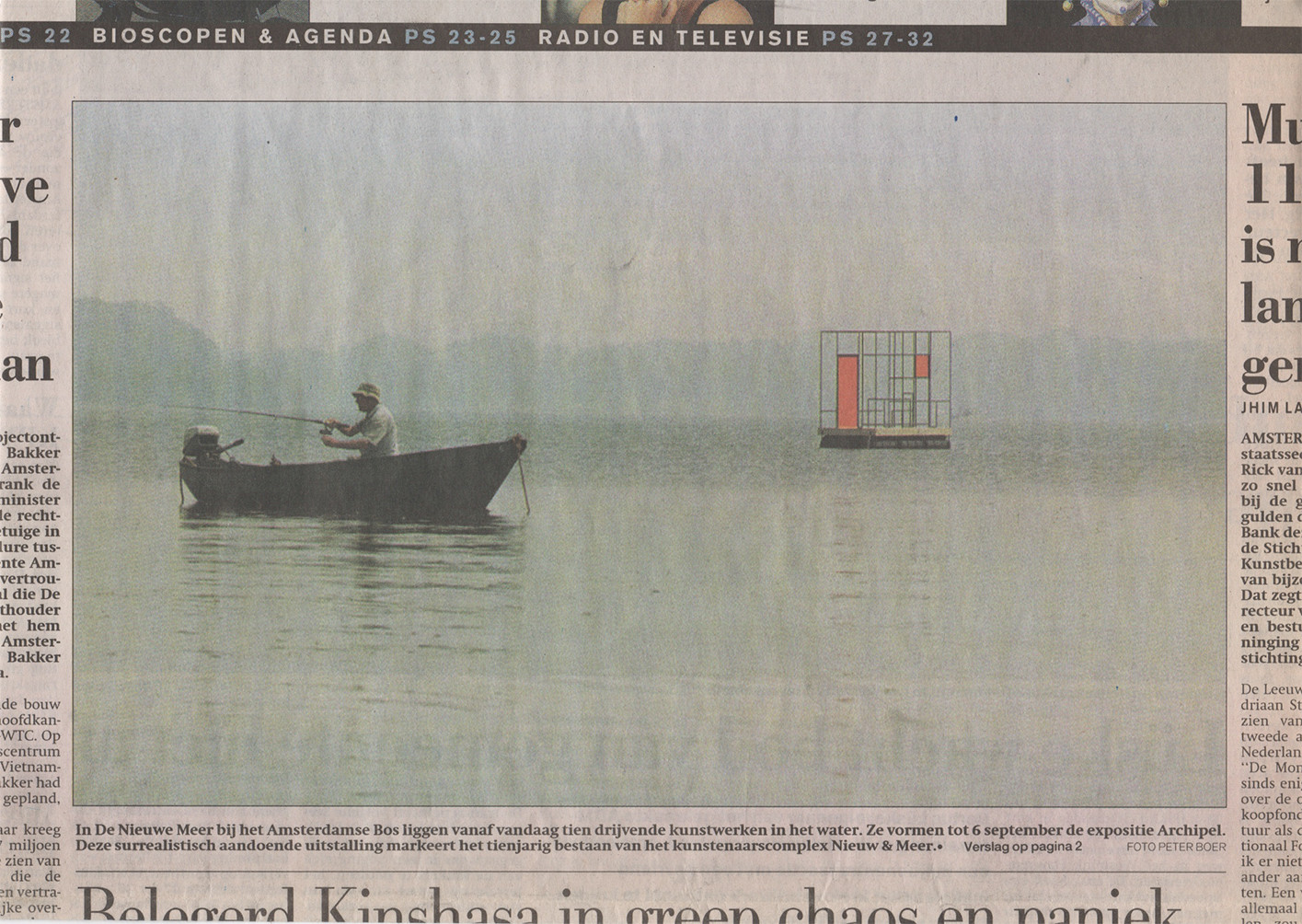 In 1998, Floating Asylum was part of the exhibition Archipel and one of ten floating artworks in the Nieuwe Meer. The exhibition marked the tenth anniversary of the studio complex Nieuw en Meer.