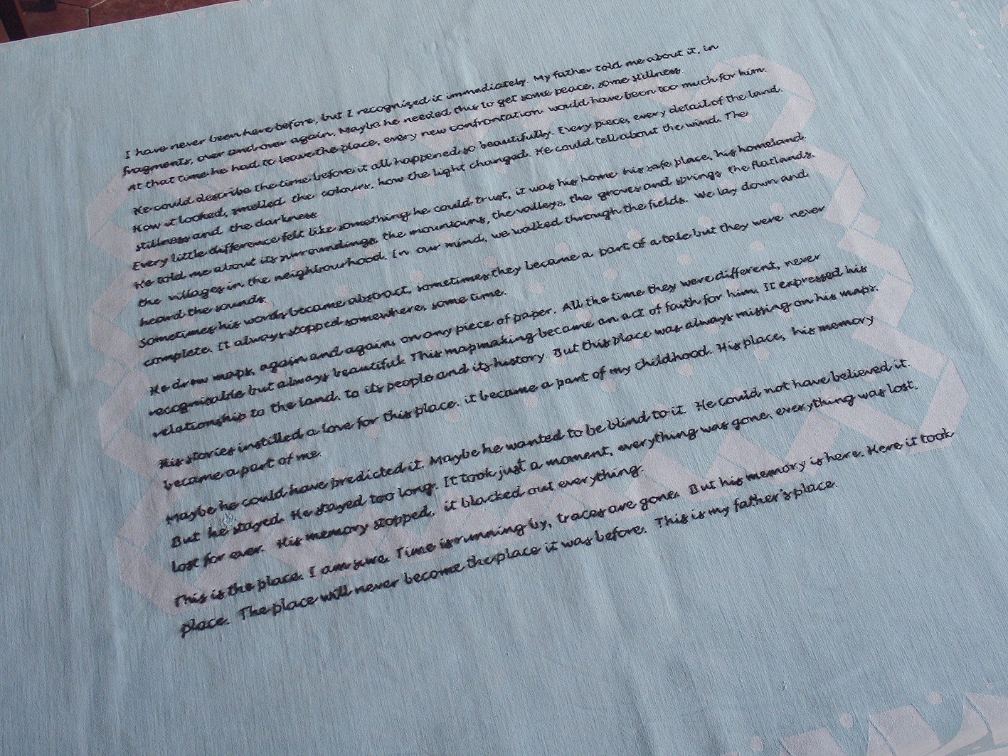 He drew maps, again and again, on any piece of paper. All the time they were different, never recognisable but always beautiful. This mapmaking