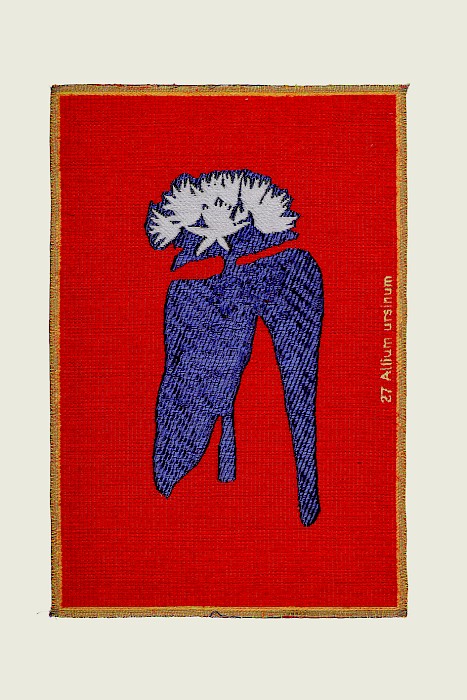 The textile work Pietà, Millefleurs, Verdure is inspired by the millefleurs style, a background motif of small flowers and plants used for various crafts and especially in French and Flemish tapestries of the late 15th and early 16th centuries.