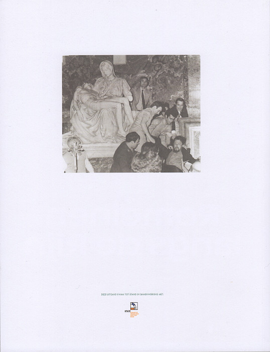 In the journal Roma Aeterna (issue 8.II), Hurkmans looks back to the moment in 1992 when she found and acquired the press photo of the moment just after Michelangelo's Pietà was attacked in 1972. Through images and words, she traces notions of absence and loss that have been present in her work ever since. The visual and textual contribution makes clear how these notions relate to ethics and politics and how, above all, artworks can raise questions in society. Ultimately, the contribution (in Dutch) gives insights into the work she did on the multi-interpretability of the press photo and Michelangelo's Pietà as Artist in Residence at the Royal Netherlands Institute in Rome.